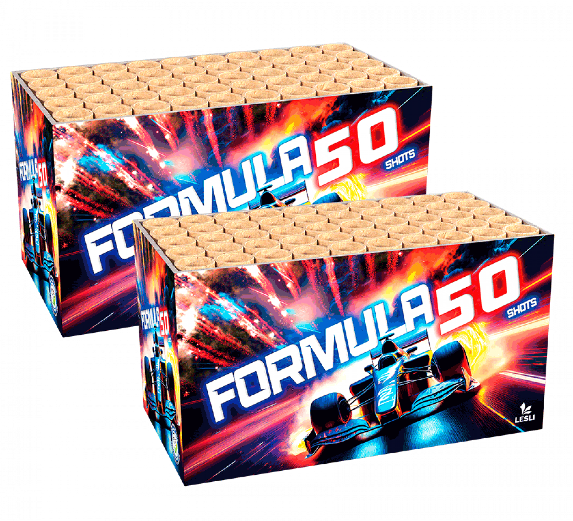 Maar liefst 50 schots! Geniet van gekleurde tails die de fel lucht verlichten.